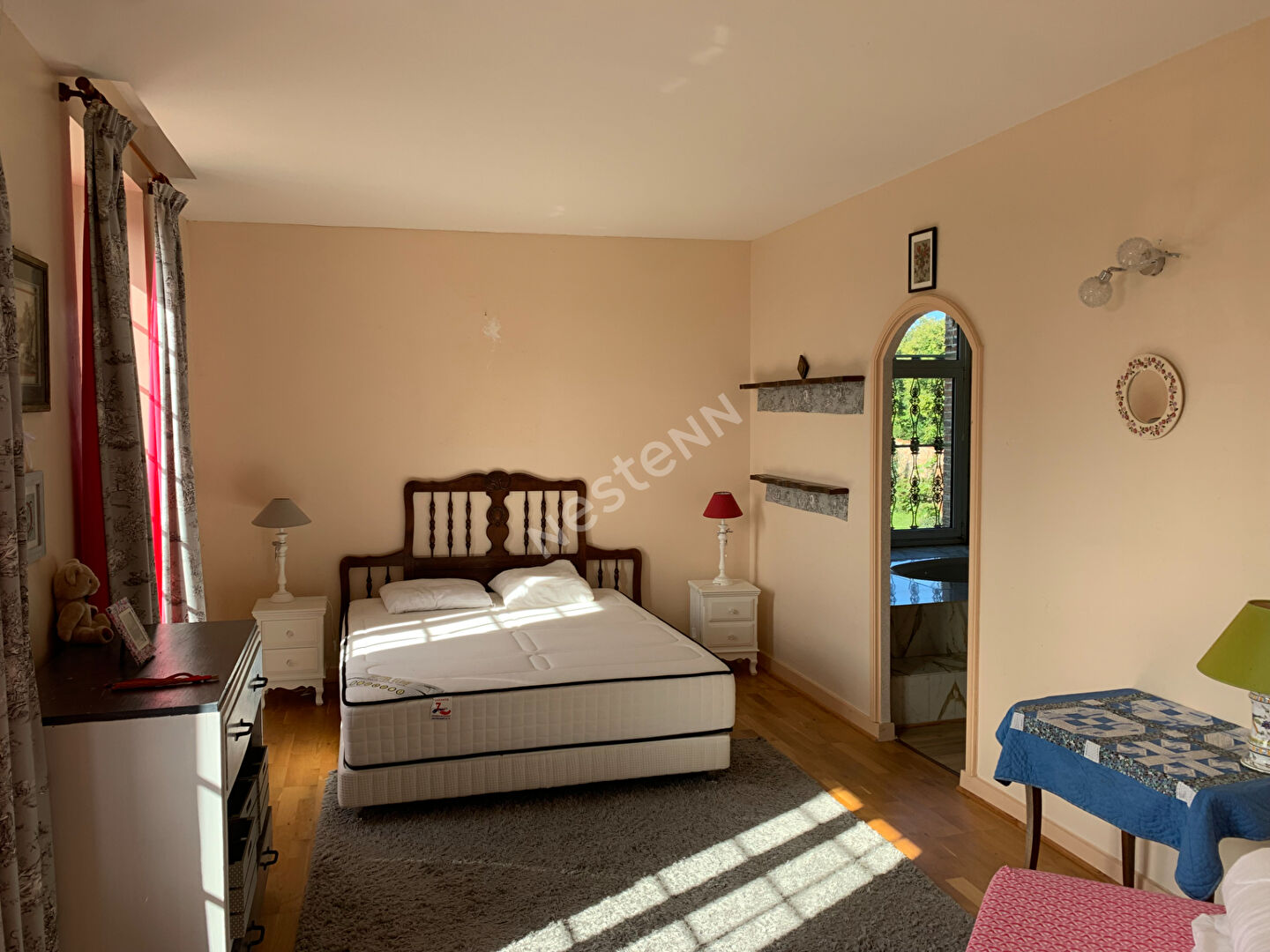 Vous découvrirez une partie habitation principale avec un salon salle à manger et son poêle à bois, une cuisine aménagée et équipée, une véranda, un second salon avec cheminée, deux chambres avec chacune une salle d'eau et wc, une suite parentale avec dressing et sa salle d'eau avec wc, une bibliothèque.