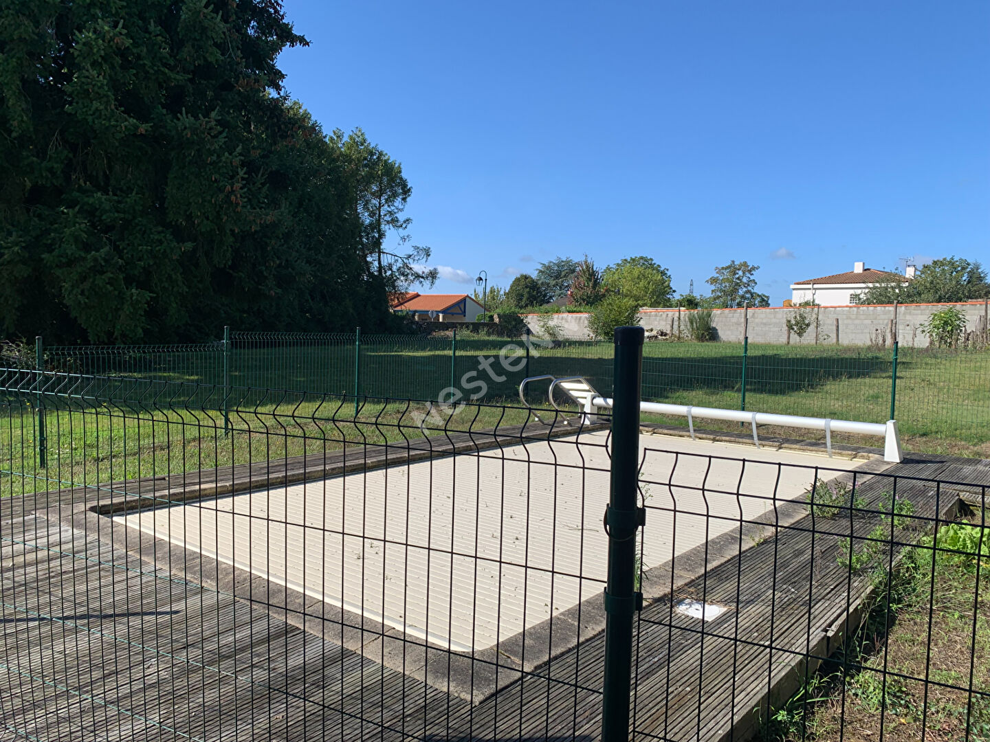 Un très beau parc entièrement clôturé de presque 2000m² avec une terrasse, une piscine et un abris de jardin clôture notre visite.