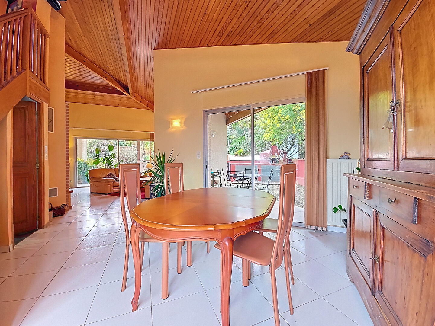 - d'un séjour traversant lumineux avec cheminée, ouvert sur plusieurs terrasses,