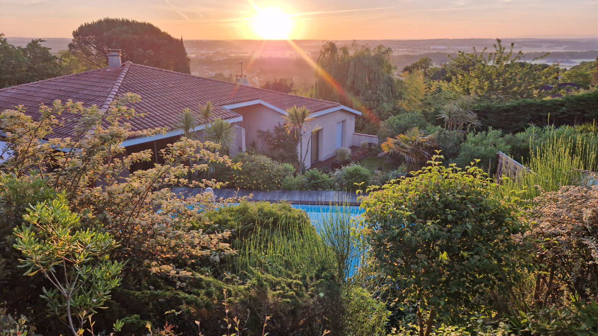 - un espace piscine sans vis-à-vis avec plage bois,