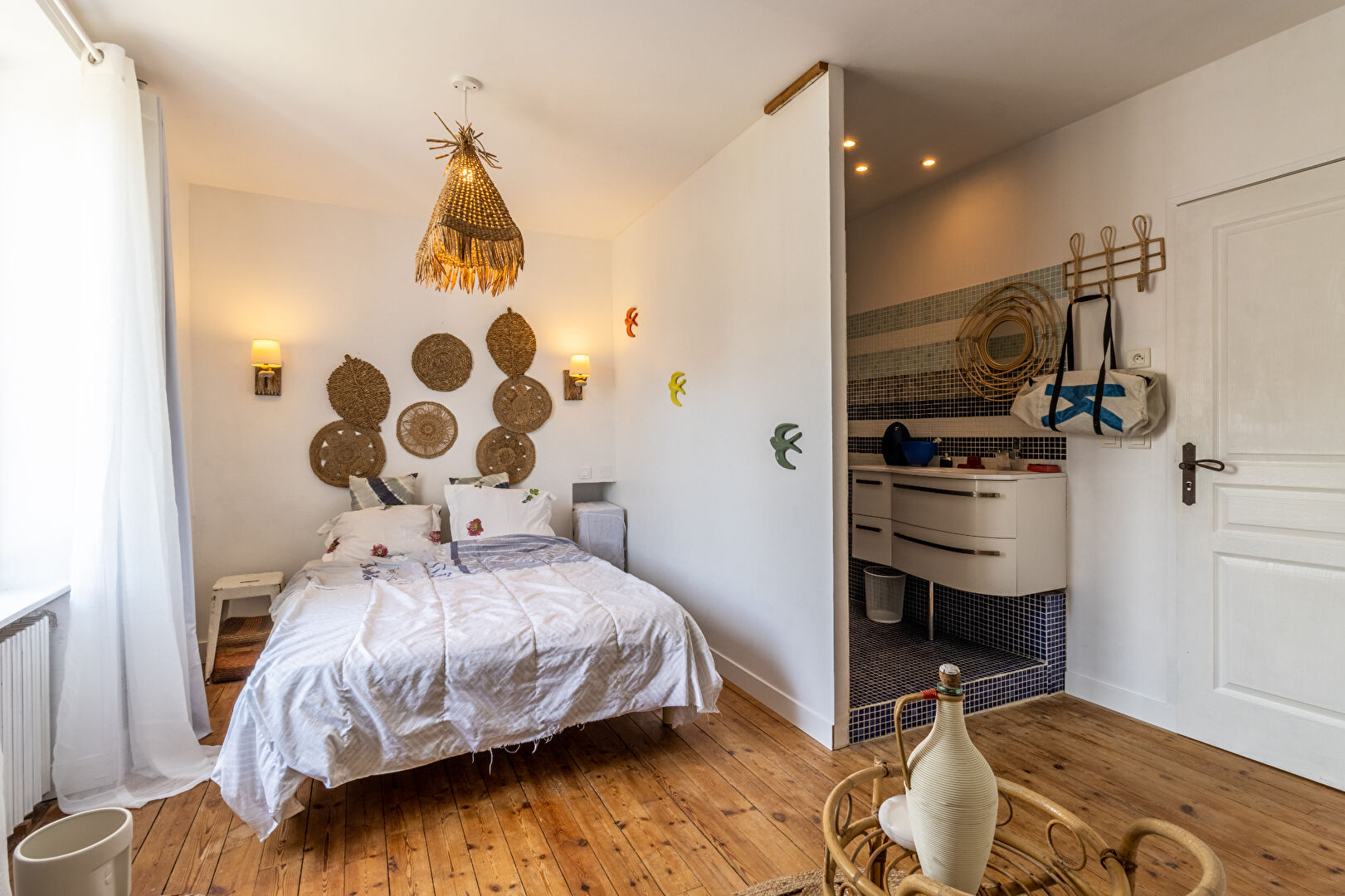 Dans les étages, vous bénéficierez de deux suites parentales, trois autres chambres et une salle de bains indépendante.